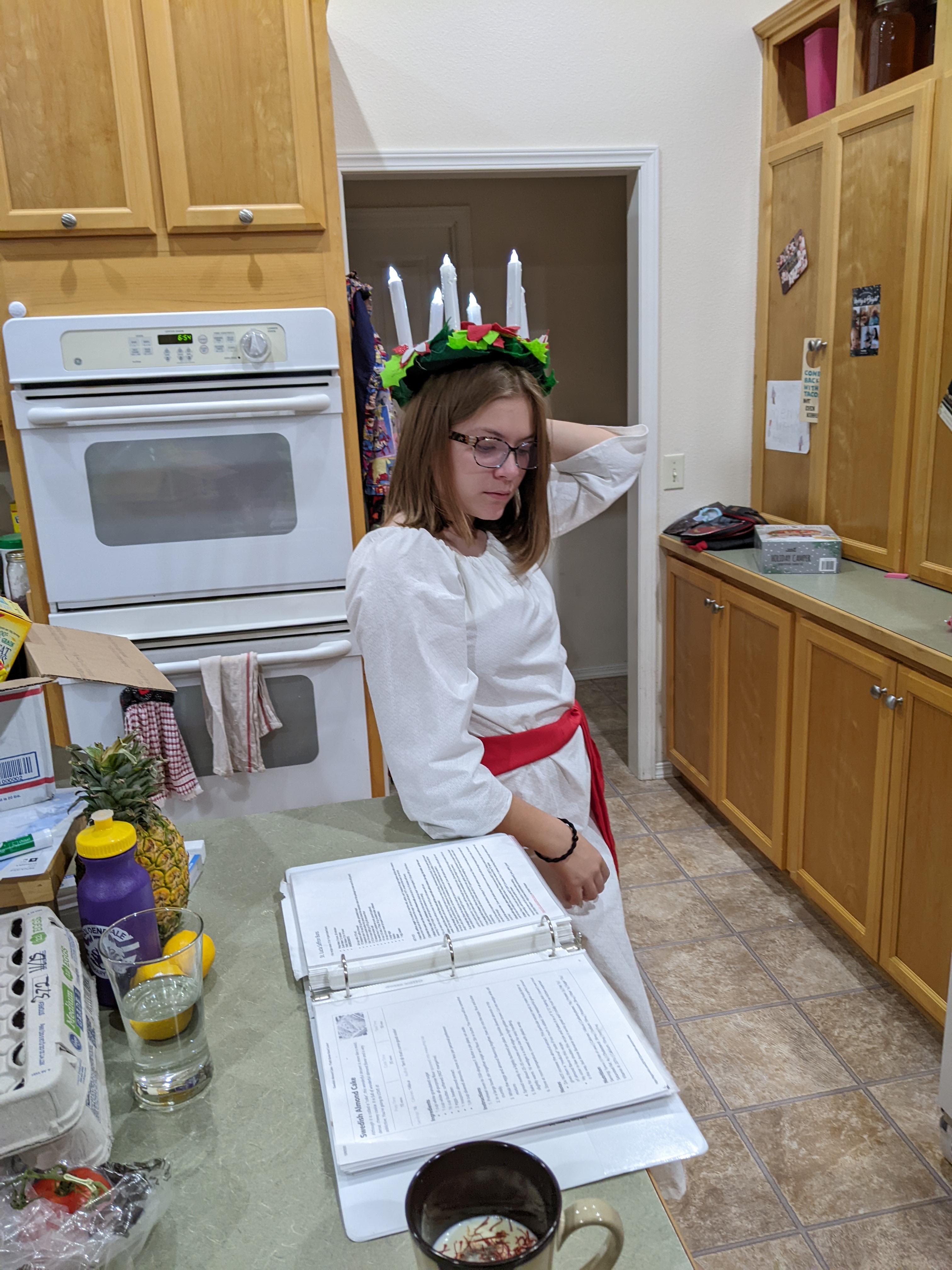 Here she is representing Santa Lucia and bringing light to my parents to invite them to the breakfast feast.