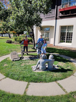 We made it to Wilcox Park! I spent many many hours here as a child. Mom cross-stitched her angels here as we played. They had a money-finding event every year and we would take our winnings next door to the Wendy's for a frosty. It looks very different today, the play equipment is all new and safe. The merry-go-round where many a shoe was lost was long gone. It's strange to return to such a beloved place and see it so far removed from memories gaze.