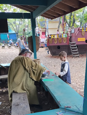 The last time we went to the Kansas City Renaissance Festival I was pregnant with Charles. We went with Tony and Susan. It was so much fun and so much bigger than any of the fairs I had attended previously. So Daniel and I were excited to return. Costco had a great deal on tickets that included turkey legs, so I snapped them up. I had to convince a few of the kids to dress up, but I am nothing if not persuasive. Per usual I was making costumes up to the last minute. We invite Floyd to join us.