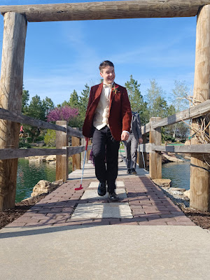 Lizzy was invited to go to a "Mormon Prom" in Columbia with her cousins. She was keen to go, so I dropped her off on Saturday, and then we all came after church on Sunday to celebrate the Passover with them. Except for Daniel,who is the the throughs of an outage and working 12s. The group went mini-golfing before the dance.
